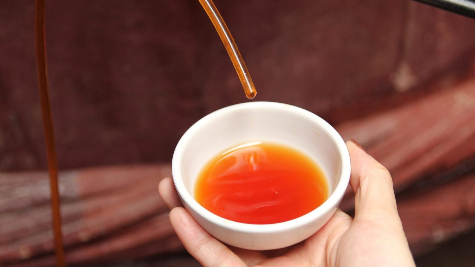 Sau một năm chờ đợi, người làm mắm sẽ tiến hành rút nước cốt. Đây chính là những giọt nước mắm tinh túy và đắt giá nhất. Nước mắm cốt có màu nâu đỏ sậm và trong suốt như hổ phách. Vị mặn mà tự nhiên đi kèm với hương thơm nồng nàn khó cưỡng. Người thợ phải theo dõi sát sao từng giai đoạn rút nước. Nước mắm cốt sau đó lại được đổ ngược trở lại thùng để tiếp tục ủ. Sự kỳ công này giúp sản phẩm đạt được độ ngon tối ưu nhất.